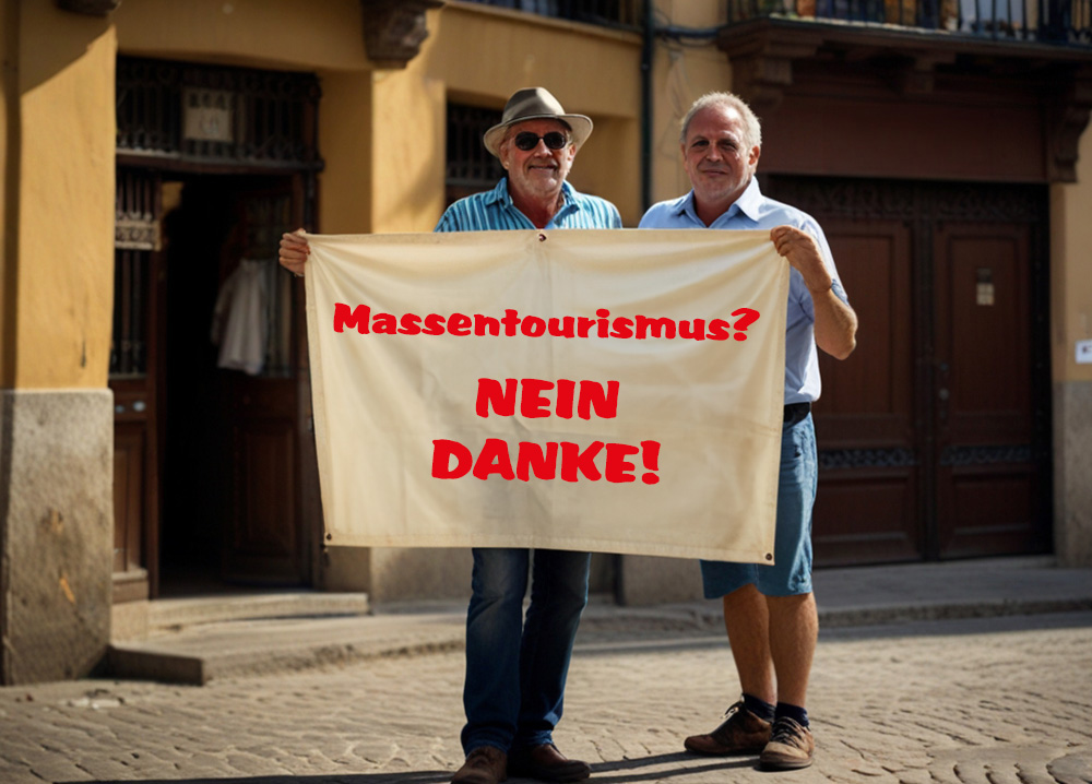 Klaus und Werner Schimmweber (52 und 54 Jahre alt) sind extra aus Gelsenkirchen nach Palma geflogen, als sie von der bevorstehenden Großkundgebung mit anschließender Demonstration erfuhren: „Wir fahren jetzt schon seit mehr als zwanzig Jahren regelmäßig mit unseren Kumpels vom Kegelclub ‚Ruhige Kugel‘ nach Mallorca, und es hat uns hier immer gut gefallen. Mal ohne die Weiber bisschen die Sau rauslassen und was trinken, sie verstehen?