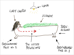 Wir erinnern uns an die Schlüsselszene, wo sie in ihrem Schaumbad mit einer anmutigen Geste eine Haarlocke hinter ihr rechtes Ohr strich, „Hach” seufzte und dann im Schaum verschwand.