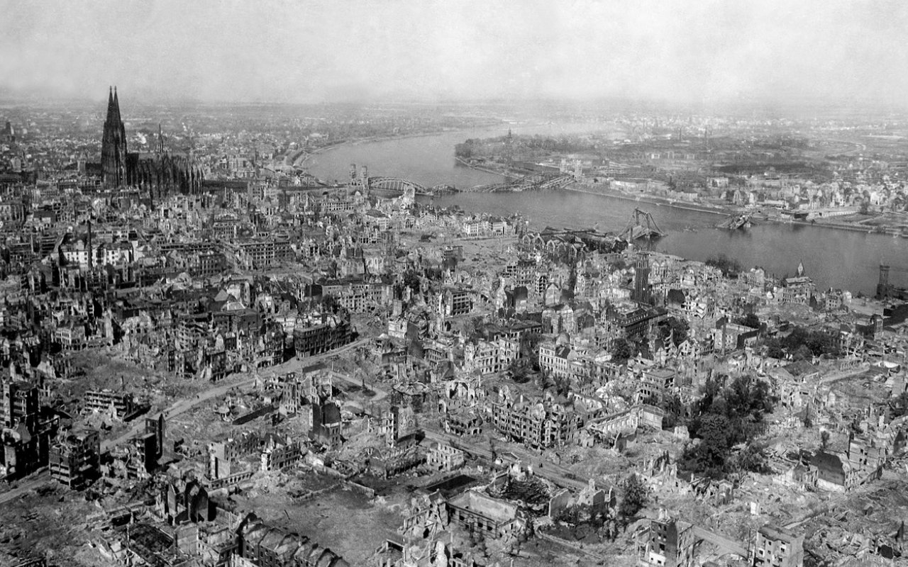 Ein gut gemachter Betrug. Doch wer genauer hinsieht, erkennt im Hintergrund den Berliner Gendarmenmarkt. Das Bild wurde 1945 in der zu großen Teilen im Bombenhagel des 2. Weltkrieges zerstörten deutschen Hauptstadt aufgenommen.