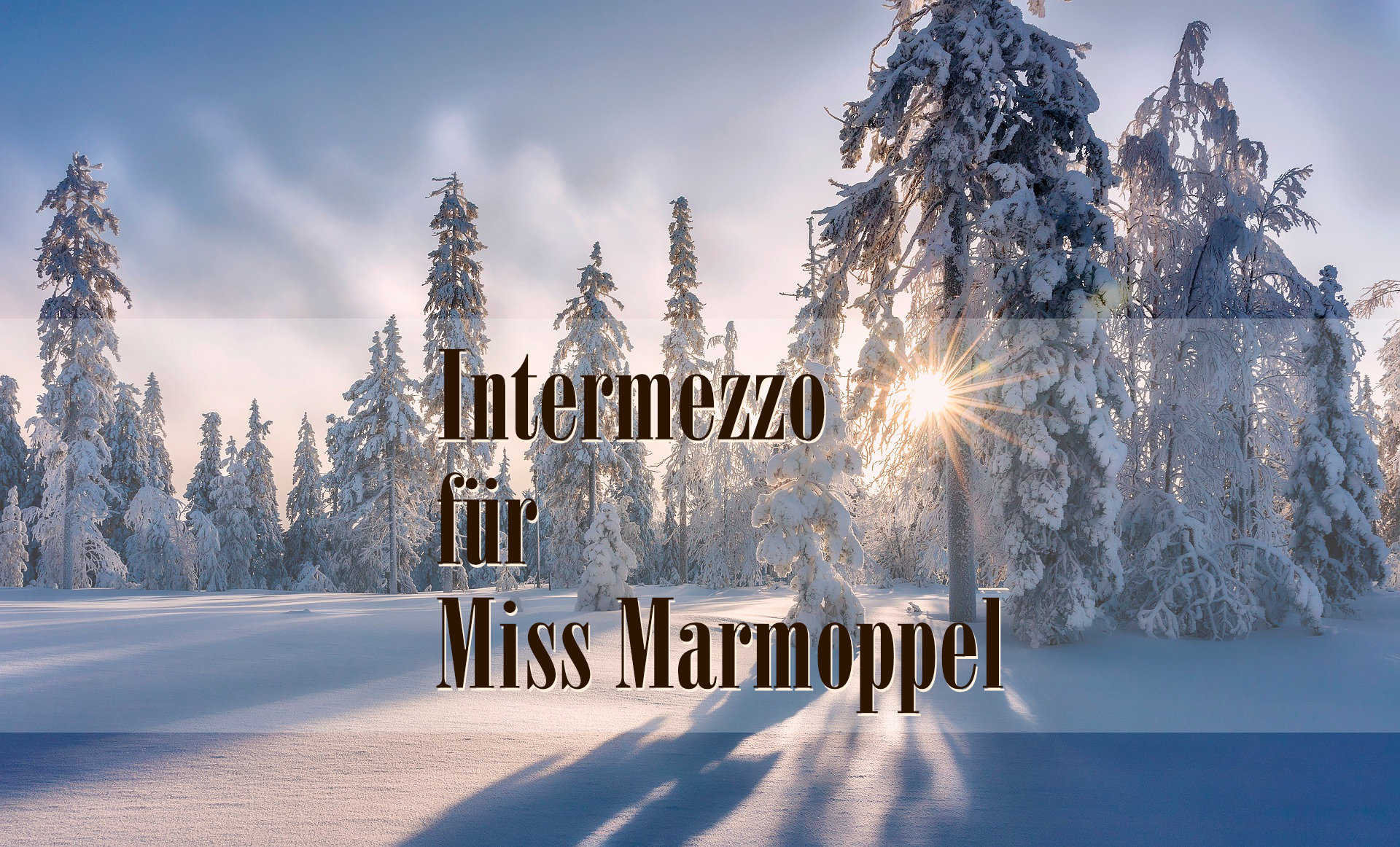 Eigentlich war Miss Marmoppel keine schlechte Skiläuferin. Und einen Skilehrer brauchte sie nicht wirklich. Aber es war doch viel schöner, sich von einem Einheimischen die besten Abfahrten und Jause-Hütten zeigen zu lassen. Besonders, wenn dieser Einheimische so gut aussah wie Luigi. Gerade fuhren die beiden durch ein kleines, tief verschneites Waldstück. Das Sonnenlicht spiegelte sich in den glitzernden Schneeflocken auf den Tannen. Die Luft war klar und man roch schon das Holzfeuer der nahen Hütte, in der Luigi beschlossen hatte, einzukehren. Kurzum, es war einfach romantisch.