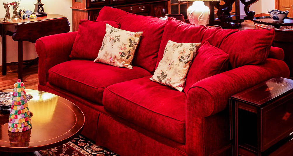 Unverzichtbar für jede saubere Ermittlung: Großes, rotes Sofa