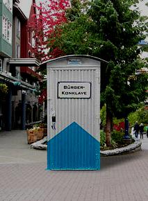 Markscheid hat diesen Mangel jetzt behoben und stellt kostenlose Bürger-Konklaven im ganzen Stadtgebiet auf (Konklave stammt bekanntlich aus dem lateinischen und bedeutet abgeschlossenes Zimmer).