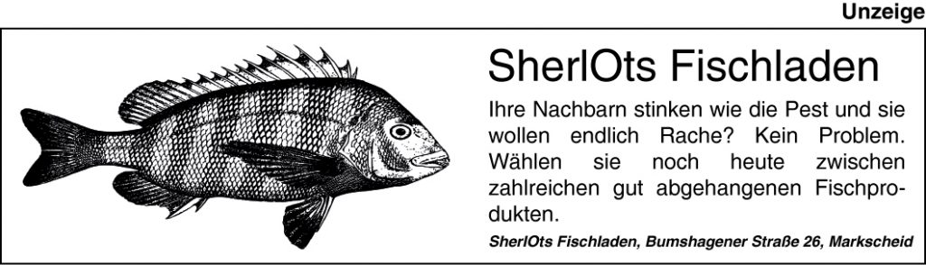 Ganz anders sieht es Notarzt Doktor Scheider (39): „Ich schicke immer wieder Patienten mit kleineren Beschwerden wie Grippe, Pest oder vorübergehendem Herzstillstand ohne große, zeitraubende Untersuchung direkt in die Mohren-Apotheke und finde, die haben eine große Auswahl an roten, grünen und gelben Pillen. Wen interessiert denn der Name von dem Laden, wenn doch das Sortiment stimmt?”