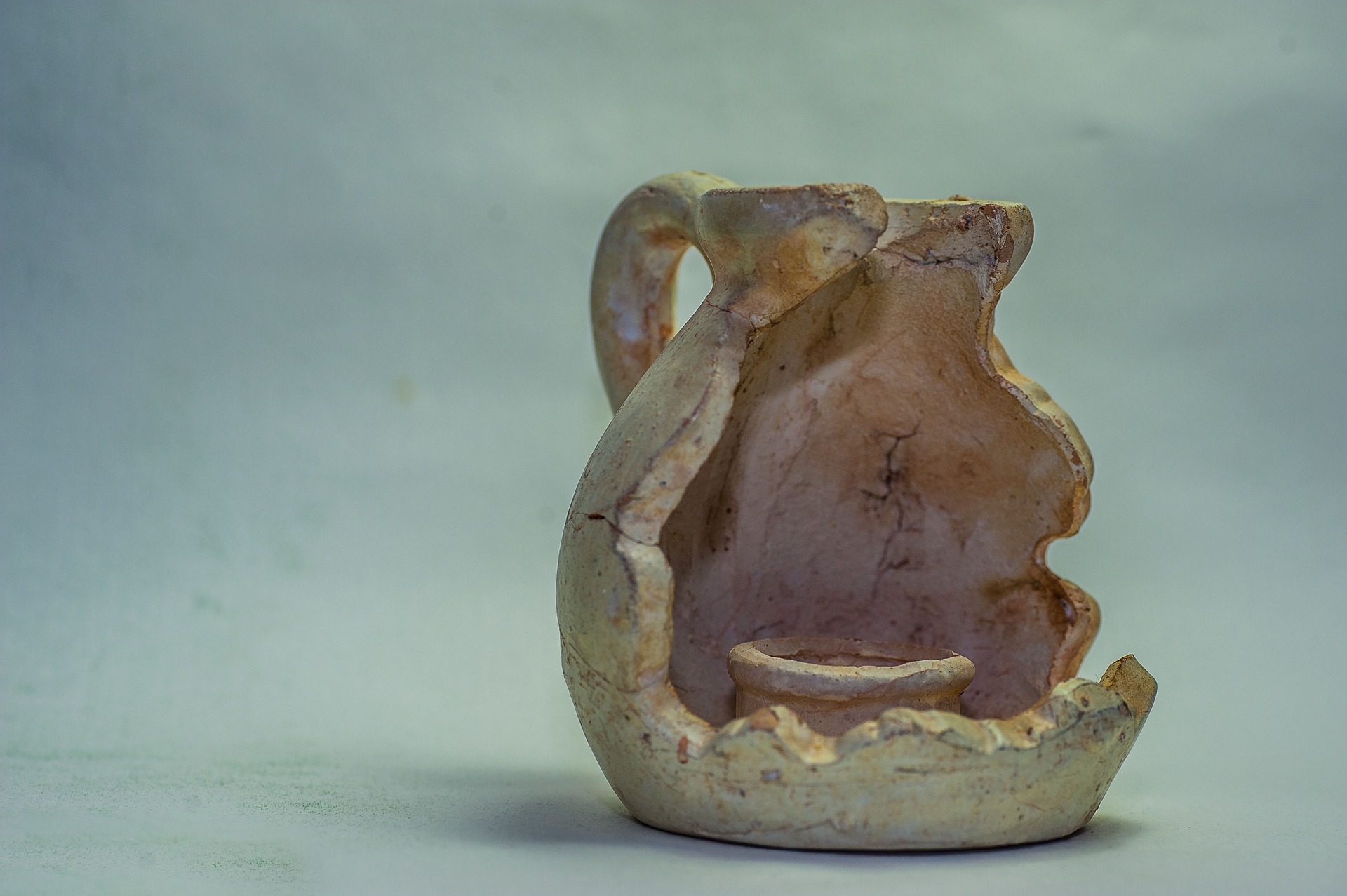 Hier sehen wir einen zerbrochenen Krug, der in der Nähe eines Brunnens zurückgelassen wurde. Er heisst Anton