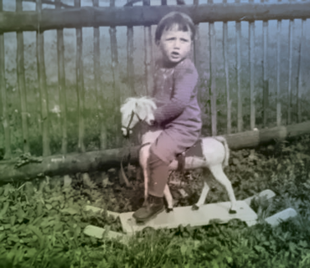 Auch später hat sich an unserer Vermögenslage nicht viel geändert, aber da will ich nicht drüber barmen (bärmeln). Kürzlich, beim Sichten alter Familienphotos, fiel mir eines davon auf und meine Erinnerung wurde heftig getriggert. Ich hatte als Kind ein Pferd. Jawohl, ein eigenes und ich glaube, das kann nicht jedes Kind von sich behaupten.