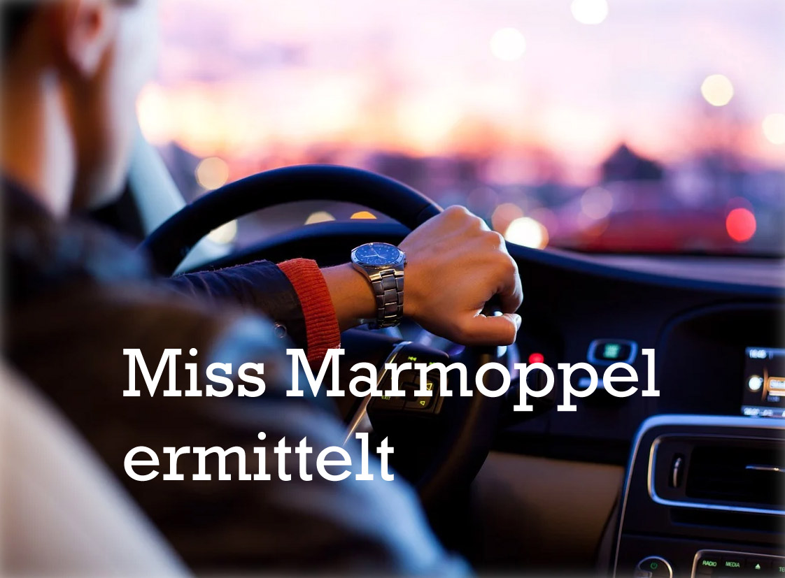 Der Fahrer machte keinerlei Anstalten, ihre Frage zu beantworten, ja, der Mann dreht ihr nicht einmal den Kopf zu, sondern blickt hinter einer dunklen Sonnenbrille starr weiter auf die Straße. Er wirkte seltsam steif und unbeweglich. Stattdessen beugte sich jetzt der Beifahrer zu ihr hin und erklärte der staunenden Miss Marmoppel den Sachverhalt: