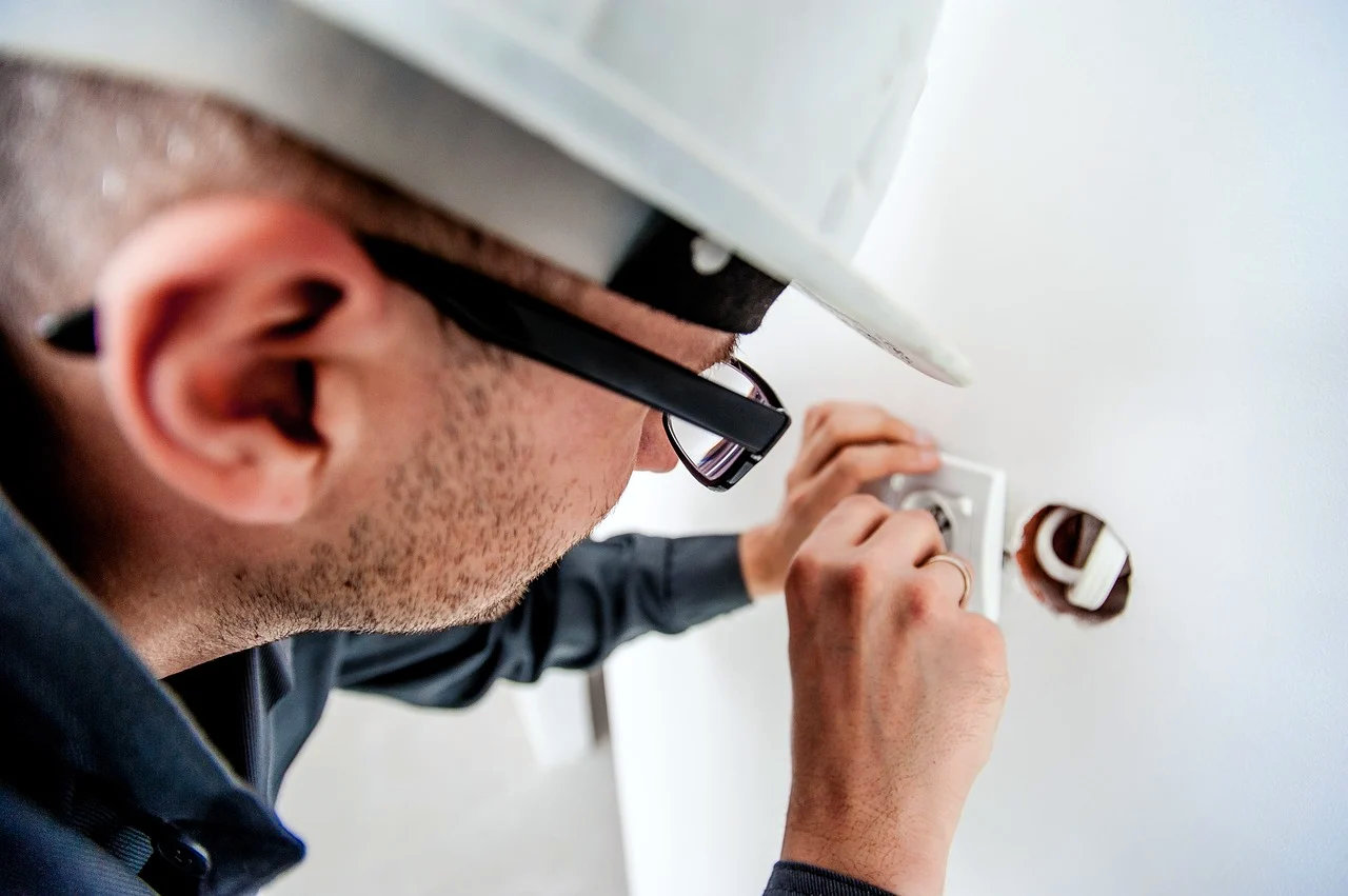 Sehr wichtig: Niemals den Bauarbeiterhelm vergessen, wenn sie mit Strom umgehen!