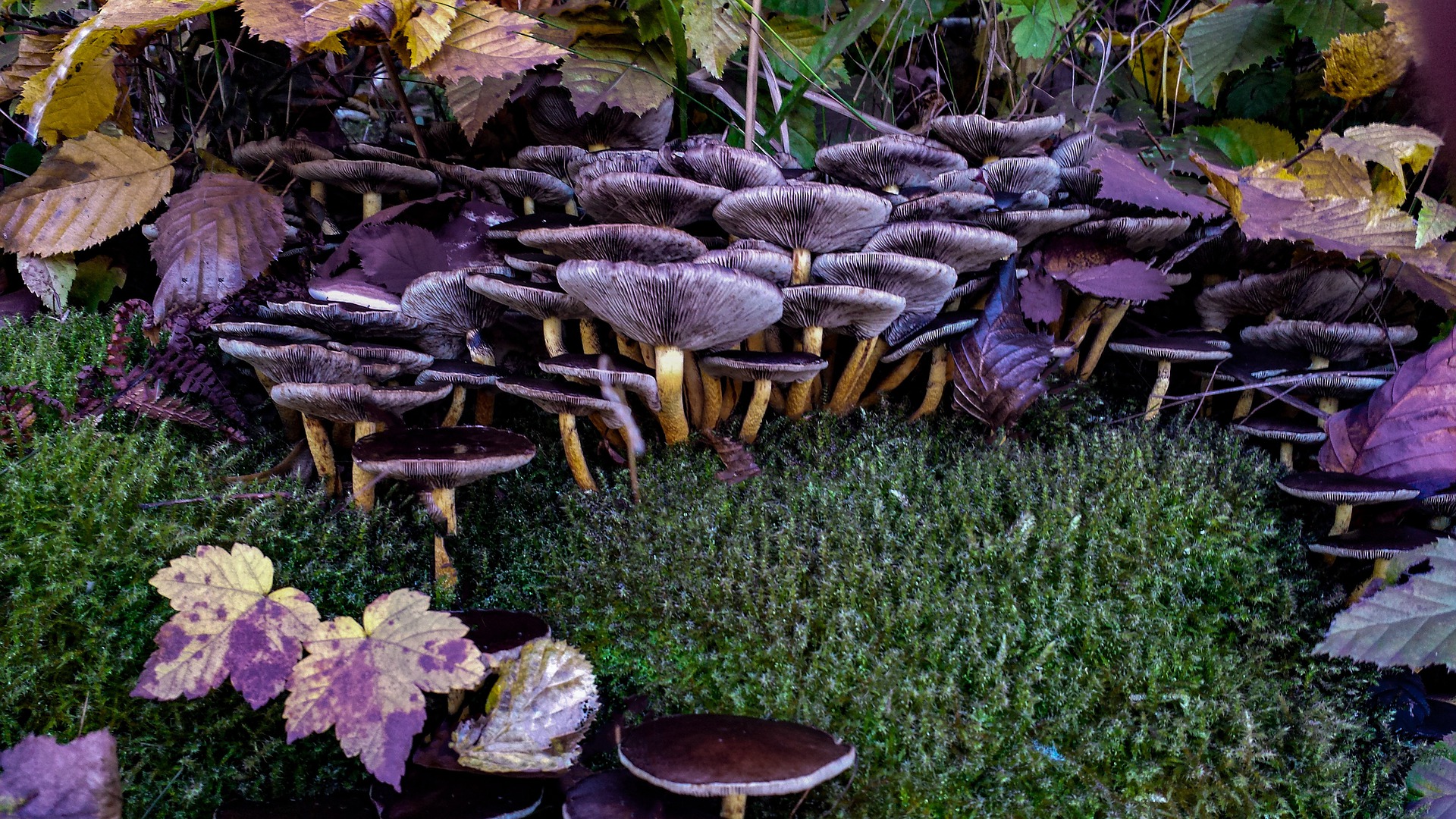 Hier sehen wir eine Kolonie von eigentlich essbaren Pilzen. Die Verfärbung ist dem Photoshop und den Elementen Jod, Cäsium137, Strontium und Plutonium zu verdanken